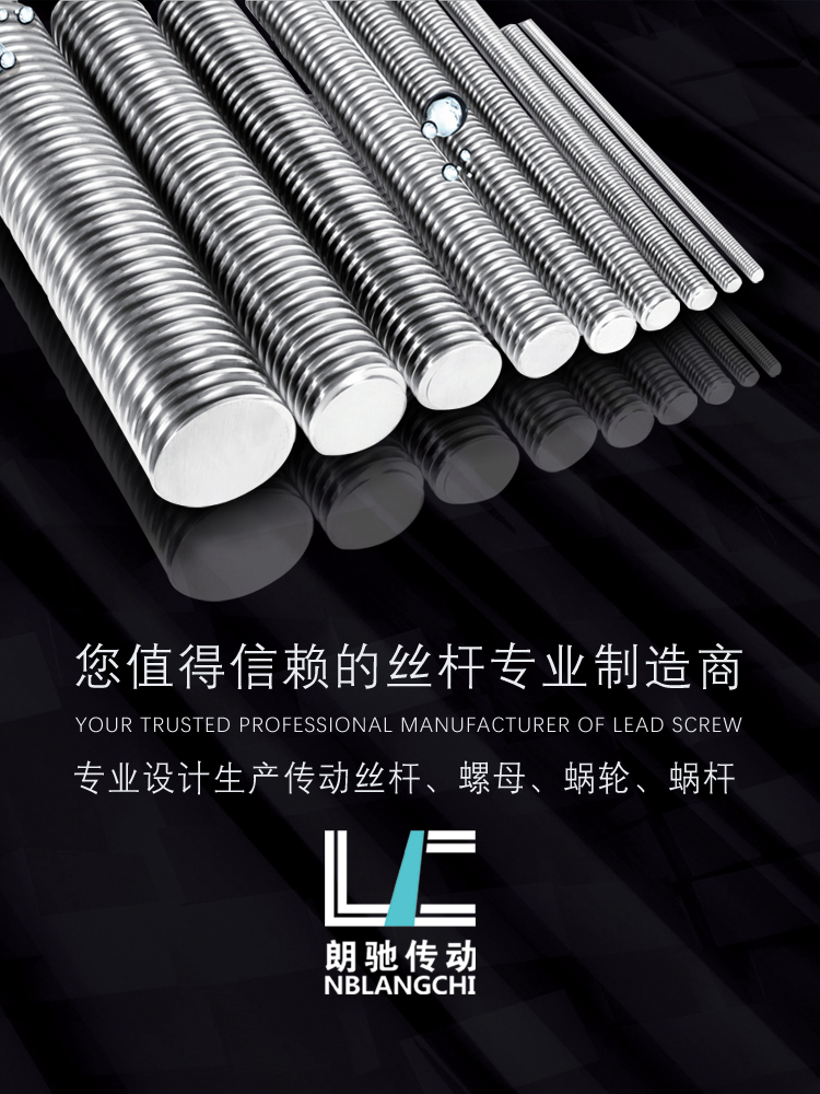 寧波朗馳傳動(dòng)科技有限公司專業(yè)生產(chǎn)傳動(dòng)、升降、推拉、緊固等作用的梯形螺紋絲桿和螺母。螺紋標(biāo)準(zhǔn)有:國(guó)標(biāo)GB、德標(biāo)DIN103、美標(biāo)ACME等單頭、多頭及左右旋向的梯形螺紋。絲桿材質(zhì)有碳鋼、合金鋼、不銹鋼、銅、鋁等;螺母材質(zhì)有錫青銅、聚甲醛(POM)、碳鋼、鑄鐵、易切削鋼等。可按客戶要求定制特殊規(guī)格的絲桿螺母、M0.5-M6模數(shù)的蝸輪蝸桿。